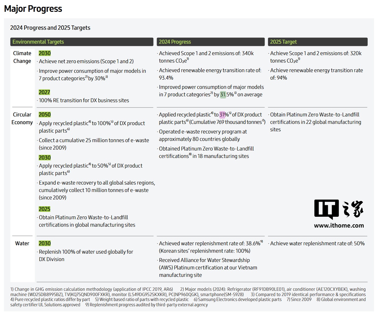 他在6月28日报道说,根据《可持续性报告》 2025年《可持续性报告》中的最后一次发布,在星系智能手机和2024年出版的其他产品中使用的可回收材料的百分比为31%。三星表示,每年可回收智能手机等设备的材料过程,其中可回收材料的使用最多可获得2024%的最高含量。此外,三星在全球80个国家和地区运营电子废物回收计划,而2023年的70个国家 /地区。相关照片如下:三星强调,能源是制造设施运营的关键组成部分,而将可再生能源的变化是对可持续能源增长的承诺。三星宣布,它将继续增加其对Cototal Nsumo可再生能源的参与。三星的可持续性报告表明,三星设备体验(DX)的可再生能源转换率去年年底的分裂为93.4%,因为2023年。与此同时,与2019年相比,电力消耗量下降了31.5%。