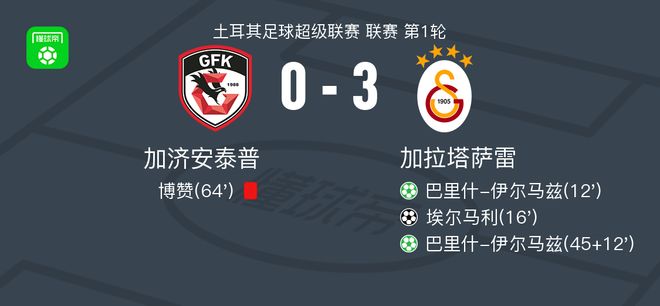8月9日,北京时代,在土耳其足球超级联赛的第一轮比赛中,Gaziantep在家中面对Galatasaray。在比赛中,Galatasaray球员Barish Ilmaz表现良好,首先受到了罚款,然后提供了精确的帮助来得分Elmali。在停赛时间的上半场,巴里什·伊尔马兹(Barish Ilmaz)获得了另一次点球,两次得分。在比赛的第64分钟,Gaziantep Bozan球员被犯规派遣,进一步削弱了球队的战斗效果。最后,Galatasaray以3-0击败Gaziantep,在新赛季中取得了良好的开端。在12分钟的美好时光中,加拉塔萨雷球员巴里什(Irmaz)获得了罚球。在第16分钟,Galatasaray球员Barish Irmaz帮助Elmali得分。 Galatasaray球员第一次进行12分钟,Barish Irmaz获得了点球。在第64分钟,Gaziantep Bozan团队获得了Roj Cardto。设备对齐的技术统计数据