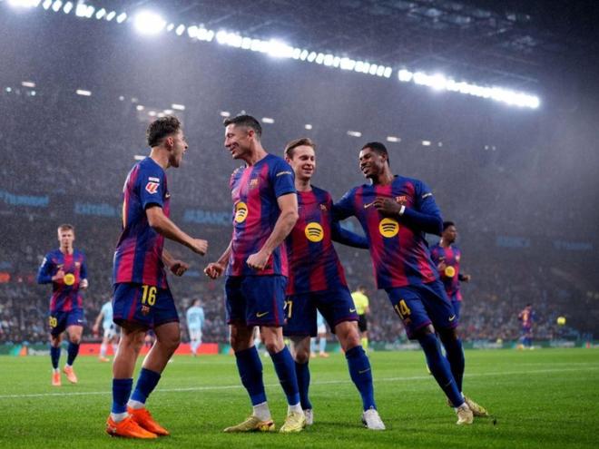 北京时间11月10日,西甲第12轮比赛,巴塞罗那客场对阵塞尔塔。比赛中,37岁老将莱万多夫斯基登场并打入三球。最终,巴萨4-2击败对手,取得二连胜,将与皇马的分差缩小到3分。 10月26日,巴塞罗那客场输给皇家马德里,积分榜上落后对手5分。联赛最后一天,巴萨3-1击败埃尔切,以微弱优势落后皇马。本赛季联赛,先发制人的皇马爆冷扳平比分,给巴萨机会。本场比赛巴萨球员的目标非常明确:全取三分。第8分钟,费尔明远射造成对手手球。裁判判罚点球。莱维·安多夫斯基主罚,射门稳稳。巴塞罗那1-0领先。第11分钟,塞尔塔扳平比分核心1-1。第37分钟,拉什福德精准传中,莱万多夫斯基破门,巴萨2-1领先。不过,巴萨很快又扳平比分。第43分钟,伊格莱西亚斯禁区外远射破门,乌特格拉助攻,2-2。中场休息前,巴萨左侧进攻,拉什福德传入禁区,亚马尔追上成功射门,3-2!塞尔塔未能再次扳平比分。下半场,拉什福德开出角球,莱万德扬头球破门。 37岁的莱万多夫斯基在回归后不久就上演帽子戏法,证明他仍然是世界上最好的前锋之一。凭借莱万多夫斯基和亚马尔的进球,巴萨4-2击败对手,取得联赛二连胜。全场比赛,巴萨占据压倒性优势,控球率高达61%,射正21次。巴萨目前积28分,仅落后皇马3分。31分。莱万多夫斯基赛后评分为8.9。他成为80年来第一位在西甲客场对阵塞尔塔的比赛中上演帽子戏法的巴塞罗那球员。同时,他也是本世纪西甲第三位参加国际比赛的最年长球员。巴萨取得二连胜的同时,也暴露了其防守不稳定的老问题。本场比赛巴塞罗那丢了2球。这是他们连续第10场比赛失分,也是自2013年3月以来最长的连续失分。